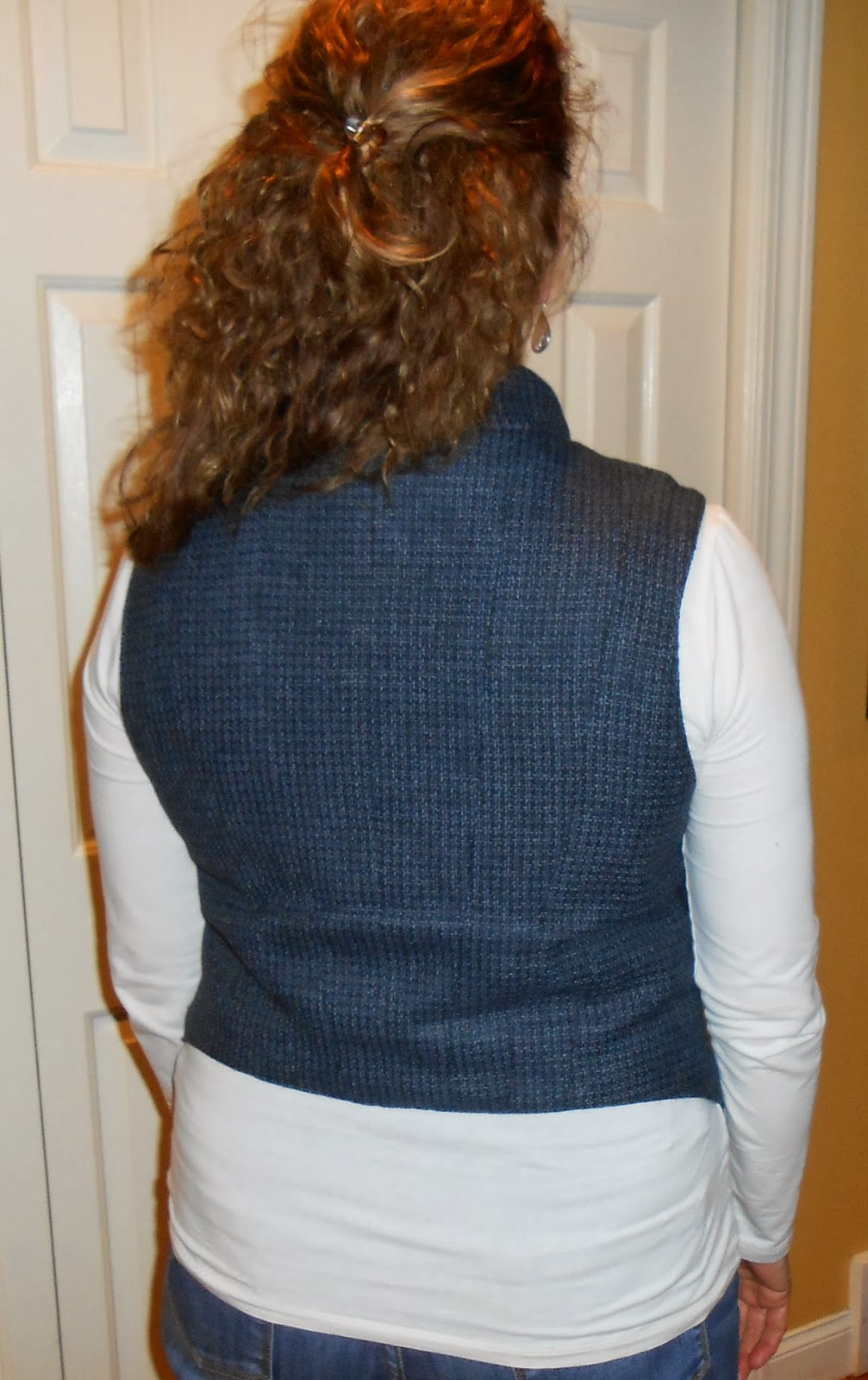 5. Hemline--this was tricky as by this time I felt like I had already spent way too much time on this little vest. The lining hem is about 1.5" shorter than the jacket itself yet from what I can tell the hem is only about 5/8". Naturally the lining hem is going to be too short. I ended up letting out the hem of the lining about 1/4 inch and then slip stitching it to the top of the jacket hem. There is very little, if any, bagging at all.